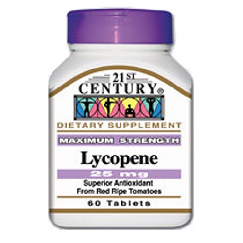 Lycopene 25 mg 60 Tablets, 21st Century Health Care. 21st Century HealthCare, Inc., is one of the largest international manufacturers of dietary supplements in the United States today. 21st Century vitamins and nutritional products are currently being consumed in more than 50 different countries worldwide and labeled in over a dozen languages.. Click Buy Now below to get Lycopene 25 mg 60 Tablets, 21st Century Health Care.